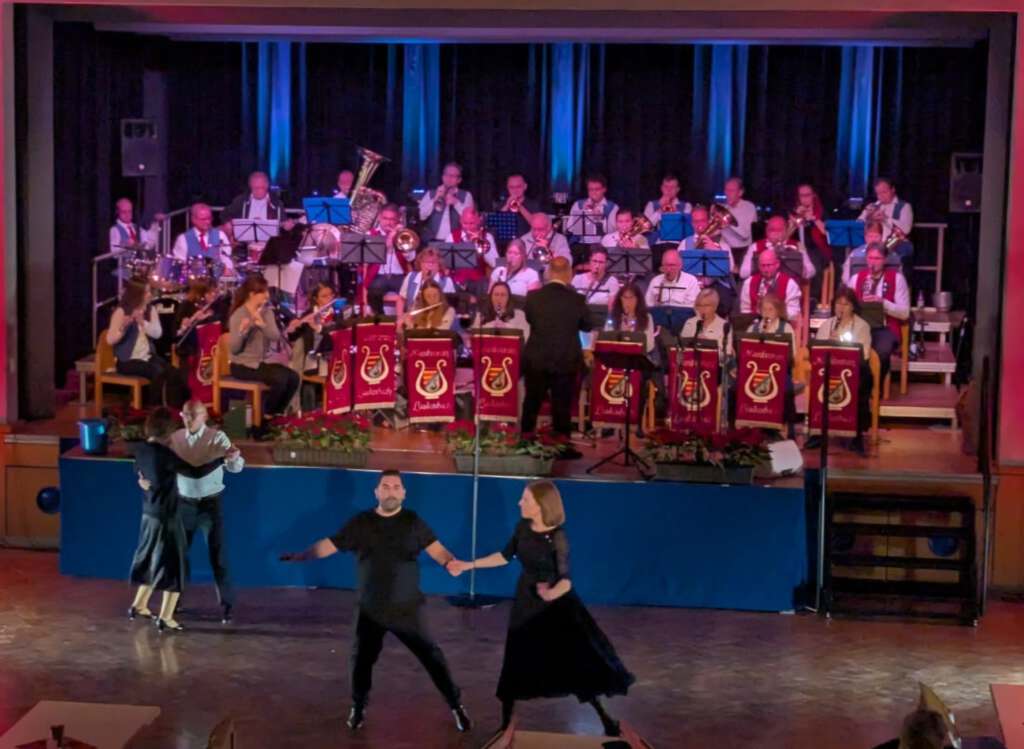 Wenn es noch einen Beweis gebraucht hätte, dass der Zusammenschluss der Blasorchester der Musikvereine Laudenbach, Kleinheubach und Wörth zu „Main Dreiklang“ eine gute Idee war: das Dreikönigskonzert am Sonntagabend im Hofgartensaal hätte ihn erbracht. Unter der sachkundigen und spürbar beseelten Leitung von Erich Rachor zauberten die drei Dutzend Musikerinnen und Musiker in 90 Minuten den Reiz einer Weltreise auf den Flügeln der Musik in den mit 150 Zuhörern stimmungsvoll dekorierten Hofgartensaal mit kluger Tischbestuhlung. Es war eine gemütliche, fast familiäre Atmosphäre an einem Wohlfühlabend, bei dem alle ihren Spaß hatten: die Zuhörer, die häufig und begeistert Beifall spendeten und am Ende mehrere Zugaben erklatschten, und das Orchester mit seinem Dirigenten, dem die Freude am Musizieren anzusehen und anzuhören war. Eine schöne Idee: Drei Tanzpaare der Tanzschule „Main-Tanz“ aus Elsenfeld boten Anschauungsunterricht, wie eleganter Walzer, lateinamerikanischer Samba, temperamentvoller Tango und schwungvolle Polka aussehen können, wenn man es kann. Genauso gelungen und vom Publikum hörbar geschätzt: Die Vorsitzenden des drei Musikvereine führten als heilige drei Könige informativ und manchmal auch witzig durchs Programm und stellten das Dutzend Musiktitel aus Städten und Ländern rund um den Erdball jeweils kurz vor, bevor sie zu ihren Instrumenten griffen und das Orchester verstärkten: Michael Breitenbach aus Laudenbach mit dem Altsaxophon, Hans-Jörg Schramm aus Kleinheubach am Schlagzeug und Jörg Prockner aus Wörth mit dem Tenorsaxophon. Eine schöne Abrundung und roter Faden: Die drei Könige, die bibelkorrekt als drei Magier oder Weise vorgestellt wurden, brachten die Botschaft von Christi Geburt der Welt als Geschenk mit – vermutlich besser geeignet als Gold, Weihrauch und Myrrhe.
